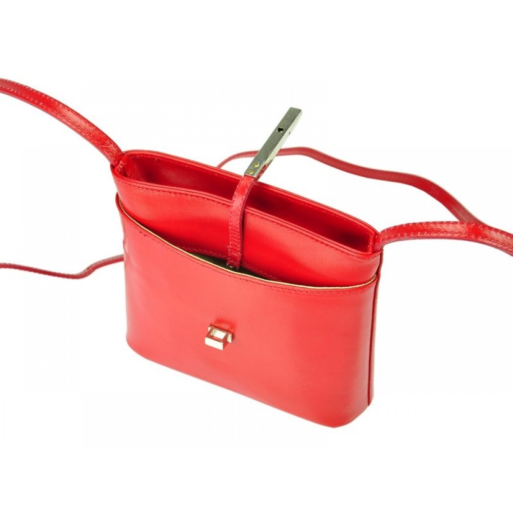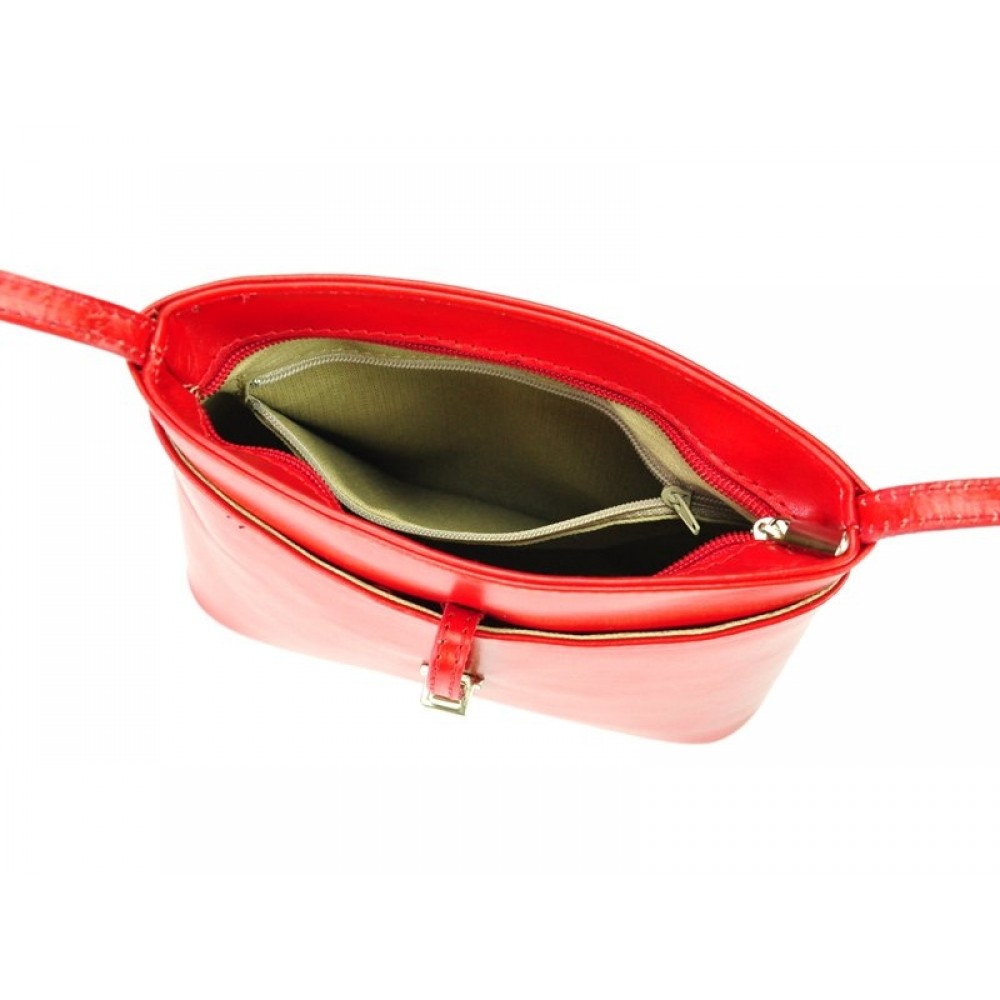 Este o poşetă din piele de viţel autentică. Structură rigidă, are buzunar cu fermoar pe partea din spate.