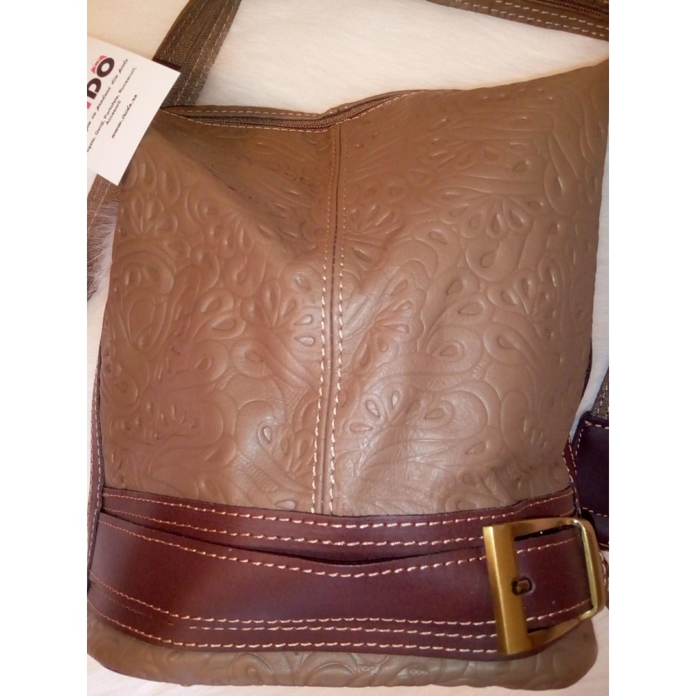 Geantă originală din piele moale cu model, convertibilă într-un rucsac. Are un buzunar interior şi un buzunar pe o parte.