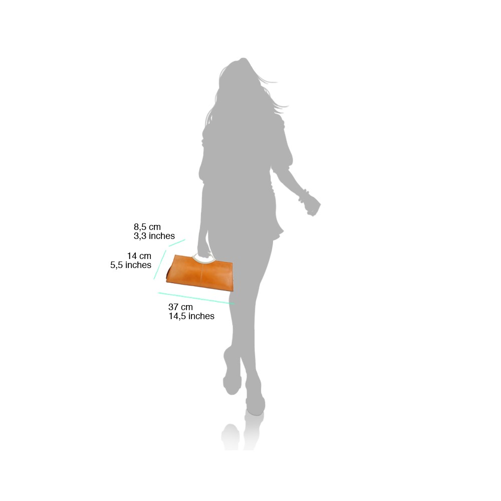Fabricată din piele autentică de viţel în Italia are structură rigidă, mânerele combinate cu un ton argintiu.