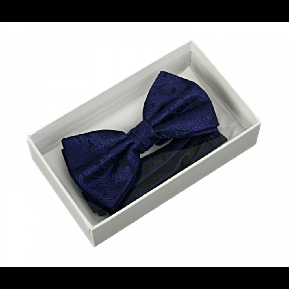 Set papion bărbați bleumarin -albastru si batista COD 6751