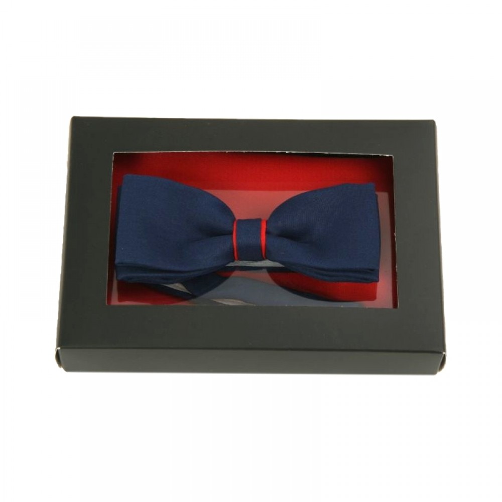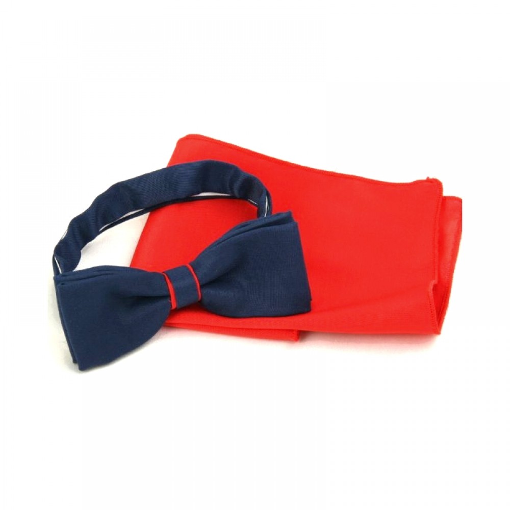 Set papion bărbați albastru / roşu şi batistă COD 6726