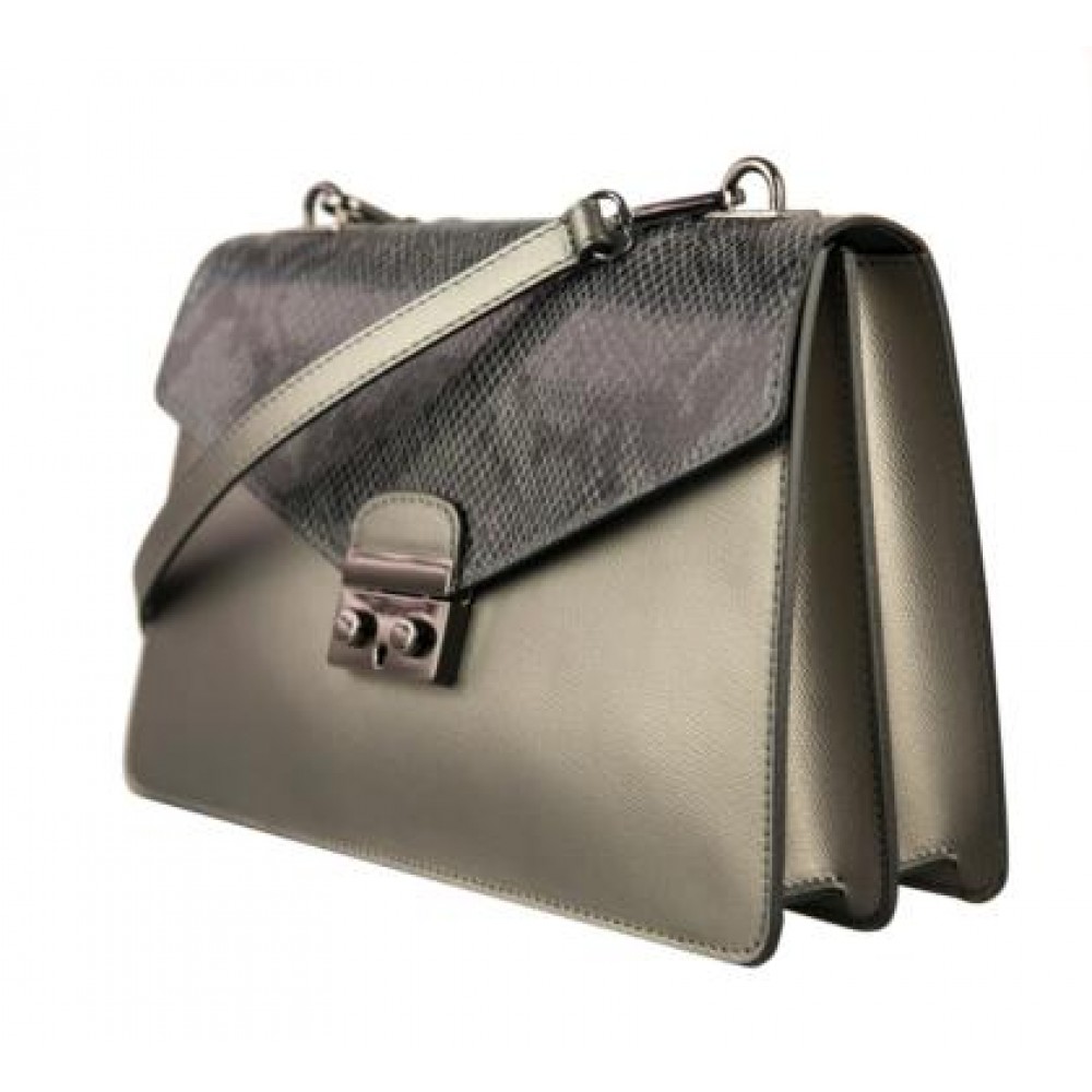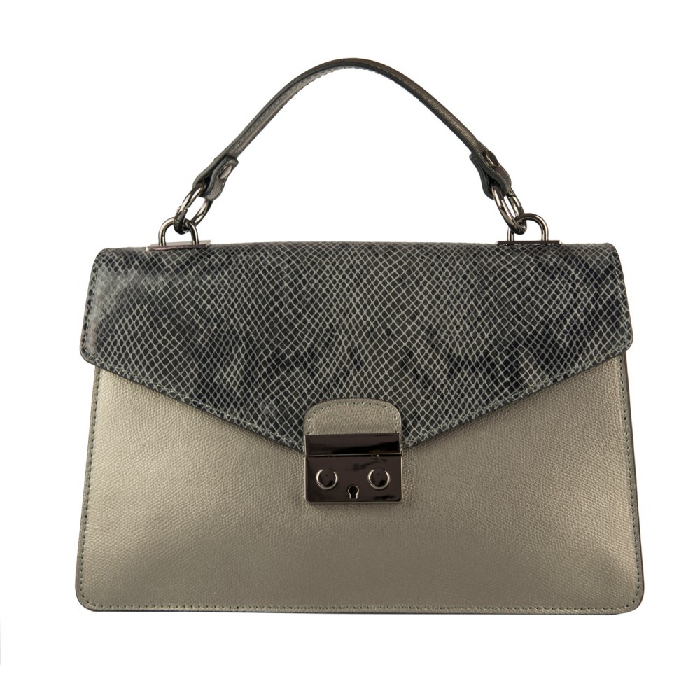Geantă piele naturală în Piton imprimat cod 5585 metalic grey