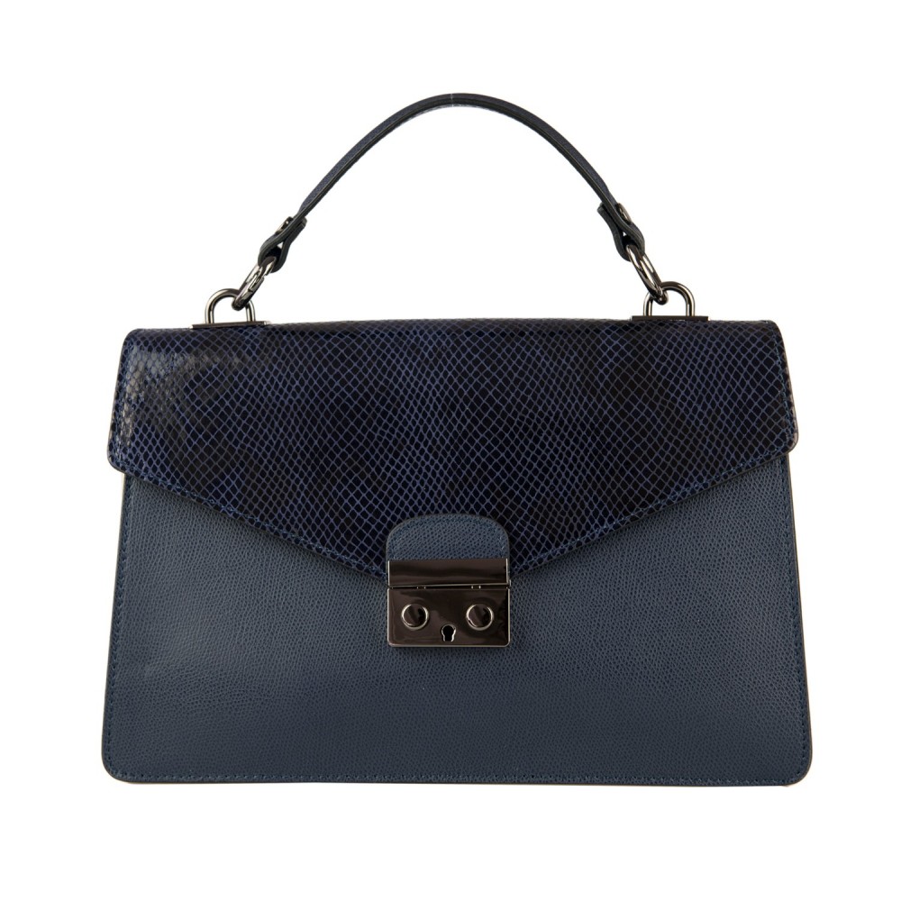 Geantă piele naturală în Piton imprimat cod 5585 albastru